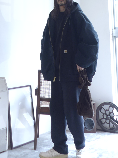 1990年代のカーハートアクティブジャケットです。ほぼ着られていない真っ黒なアクティブ。サイズも4XL。ダウンジャケットを着てるかのようなボリューミーなシルエットになります。モードな印象のカーハートです。ここまで振り切ったサイズならアリじゃないでしょうか。